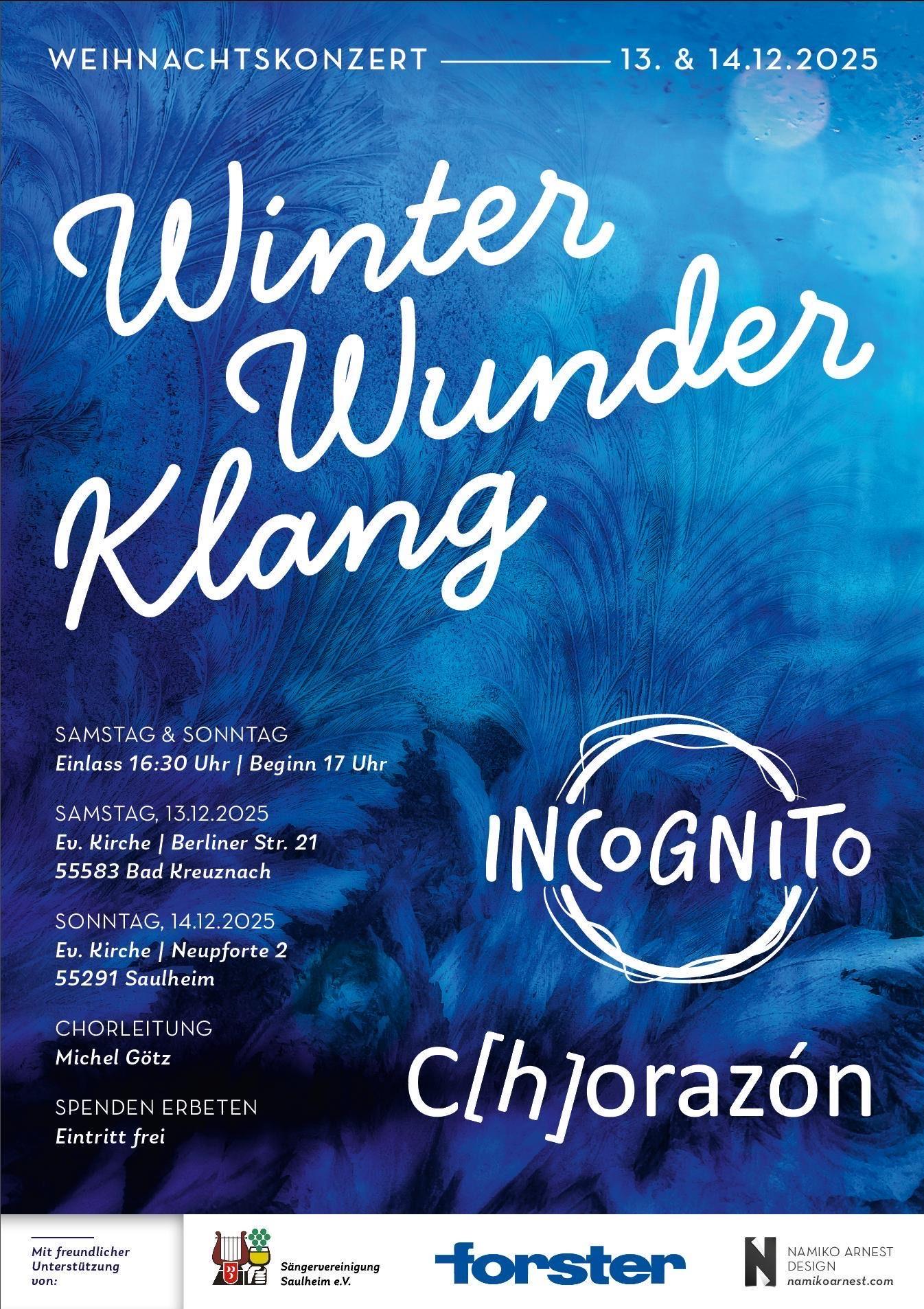Wir freuen uns, zu unseren diesjährigen Weihnachtskonzerten gemeinsam mit dem Incognito einzuladen!